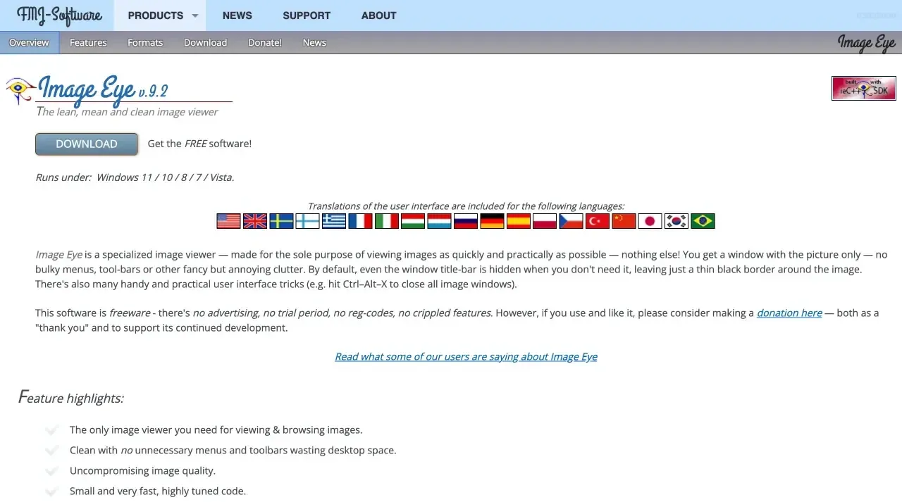 FreeVimager は最新版が 2022 年 3 月にリリースされたばかりで、より良いユーザー体験を提供するために、新機能とバグフィックスが実装されています。無料で Windows の GIF アニメーションを再生できるほか、追加の再生設定なしで GIF をループさせることができます。BMP、TIFF、オーディオファイル、ビデオフォーマット、その他多くのフォーマットに対応しています。