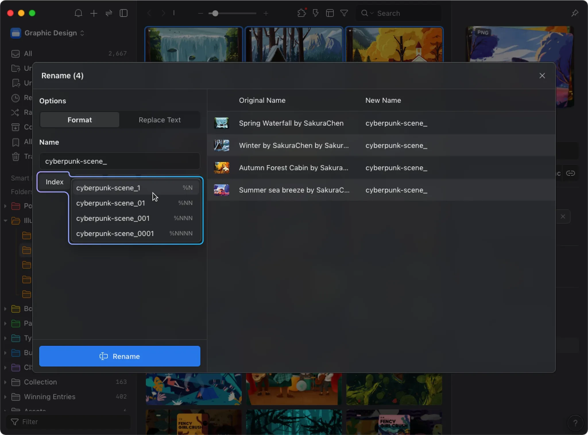 また、仮想分類とタグ付けの活用により、複数の視点から素材を柔軟に管理できます。過去に保存したアイデアを簡単な検索で即座に呼び出したり、大量の新しい画像を一括操作で手軽に整理したりする姿を想像してみてください。手動管理の負担から解放されることで、デザイナーは途切れることのない創造性を維持し、すべての時間を生産的に活用できます。